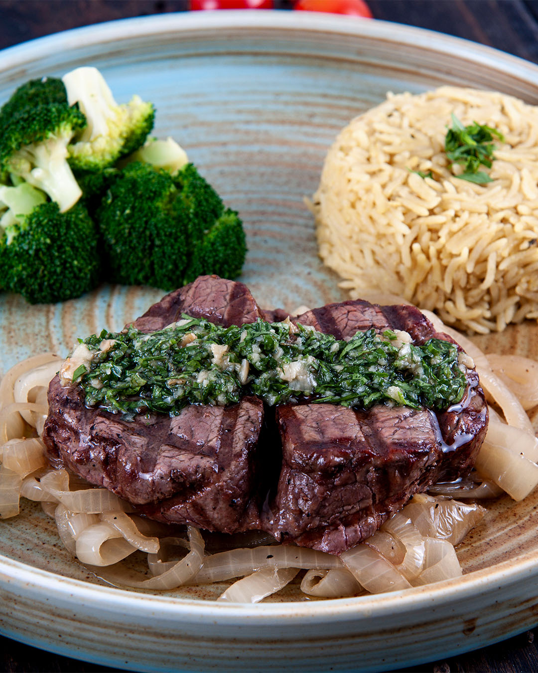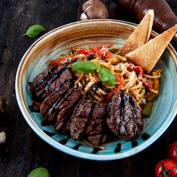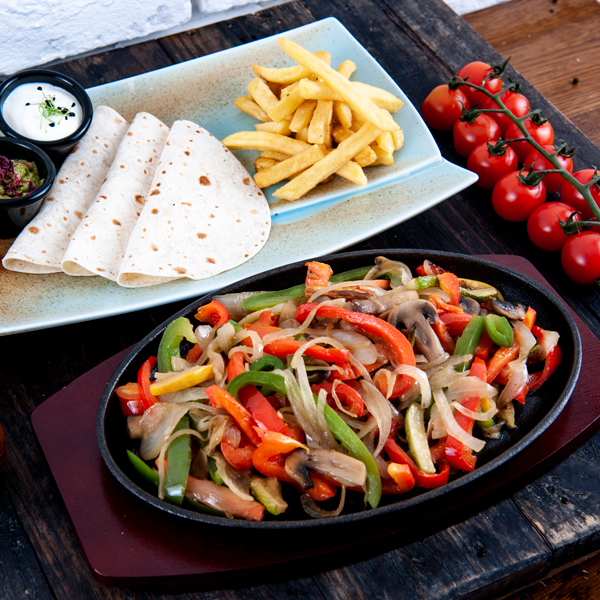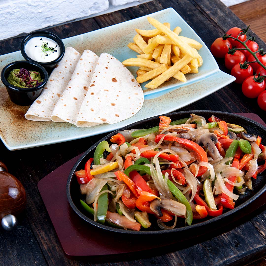 Tomato, colored capsicum, onion, cooked together topped with egg and sausages.
