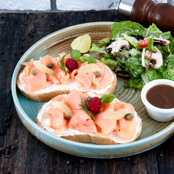 سمك السلمون المدخن على الخبز المحمص