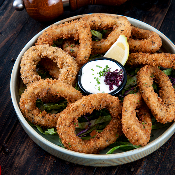 Ring of calamari coated in a crunchy breading served with tartar sauce.