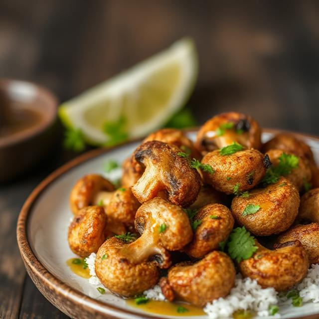 Fried fresh mushrooms served with honey lime dressing